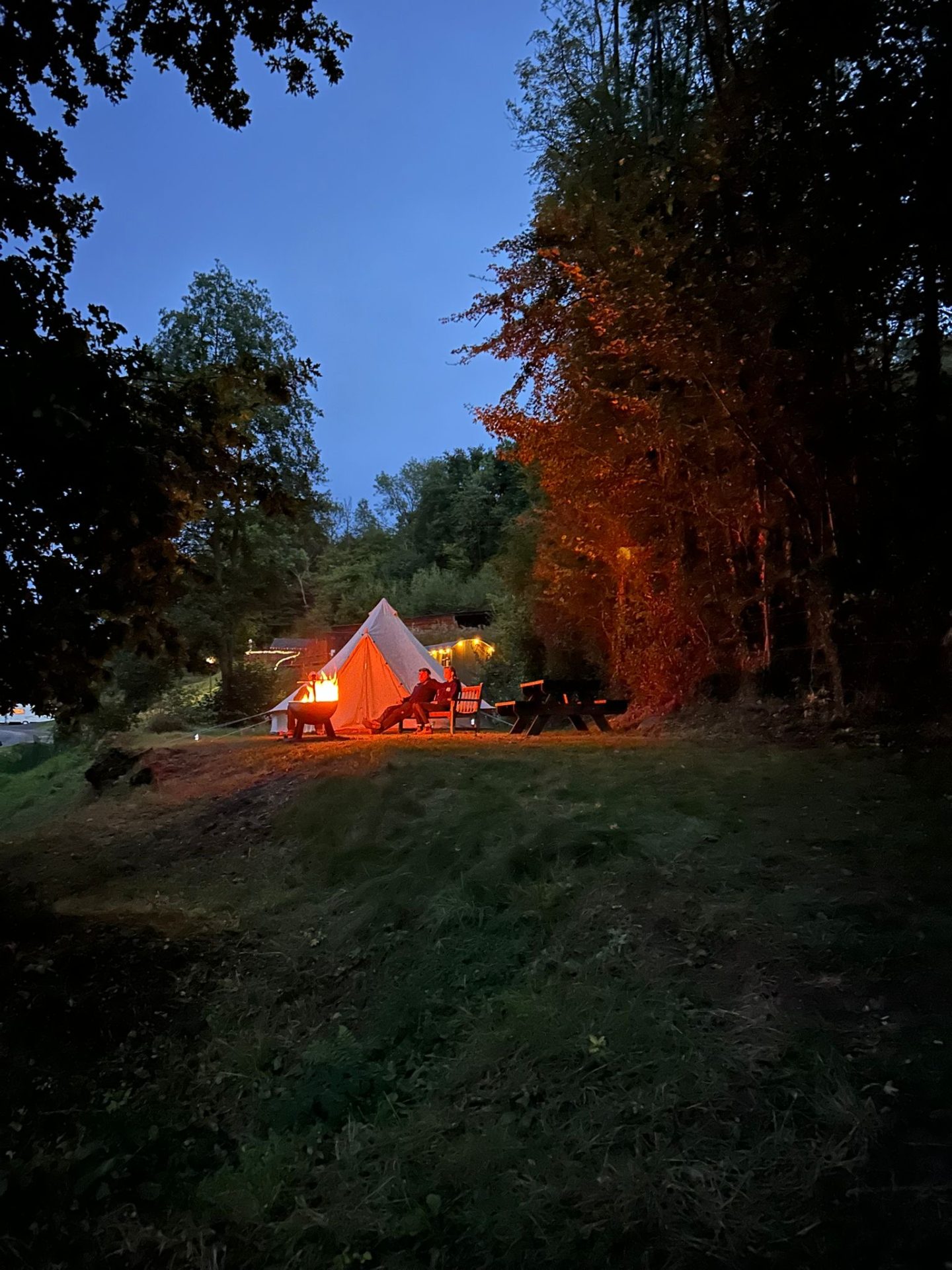 The bell tent is the chance to stay under canvas and no need to fiddle with a tent peg or argue about putting the tent up yourself! Our bell tent is a great option for being close to the stars but still staying warm and dry.