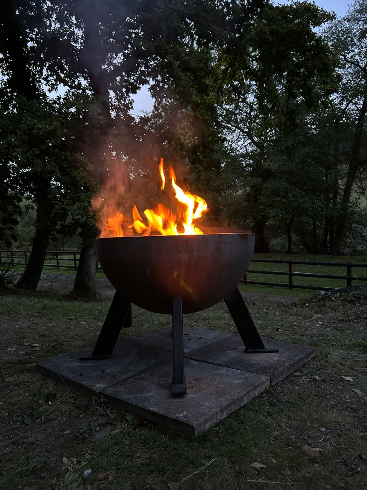 Whilst sitting by the fire pit at night enjoying a glass of wine, you can watch the stars come out and listen to the owls tooting. Firewood available to purchase at ยฃ5 per bag – one free trunk to get you started. This truly is a unique experience. The Bell Tent has private parking next to the tent itself.
