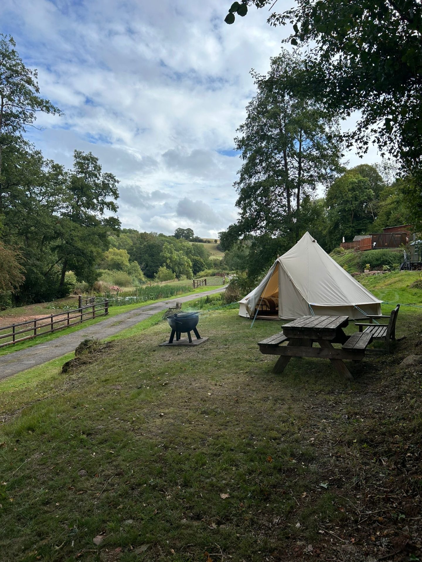 The bell tent sleeps 4 people (1 double bed and 2 singles). A birthday package consisting of homemade cake, bottle of wine and helium balloon available at the extra cost of ยฃ20 when requested*. Itโs available to book now, with a minimum of a 2 night stay at weekends, and 1 night stay in the week. Sorry no pets allowed.