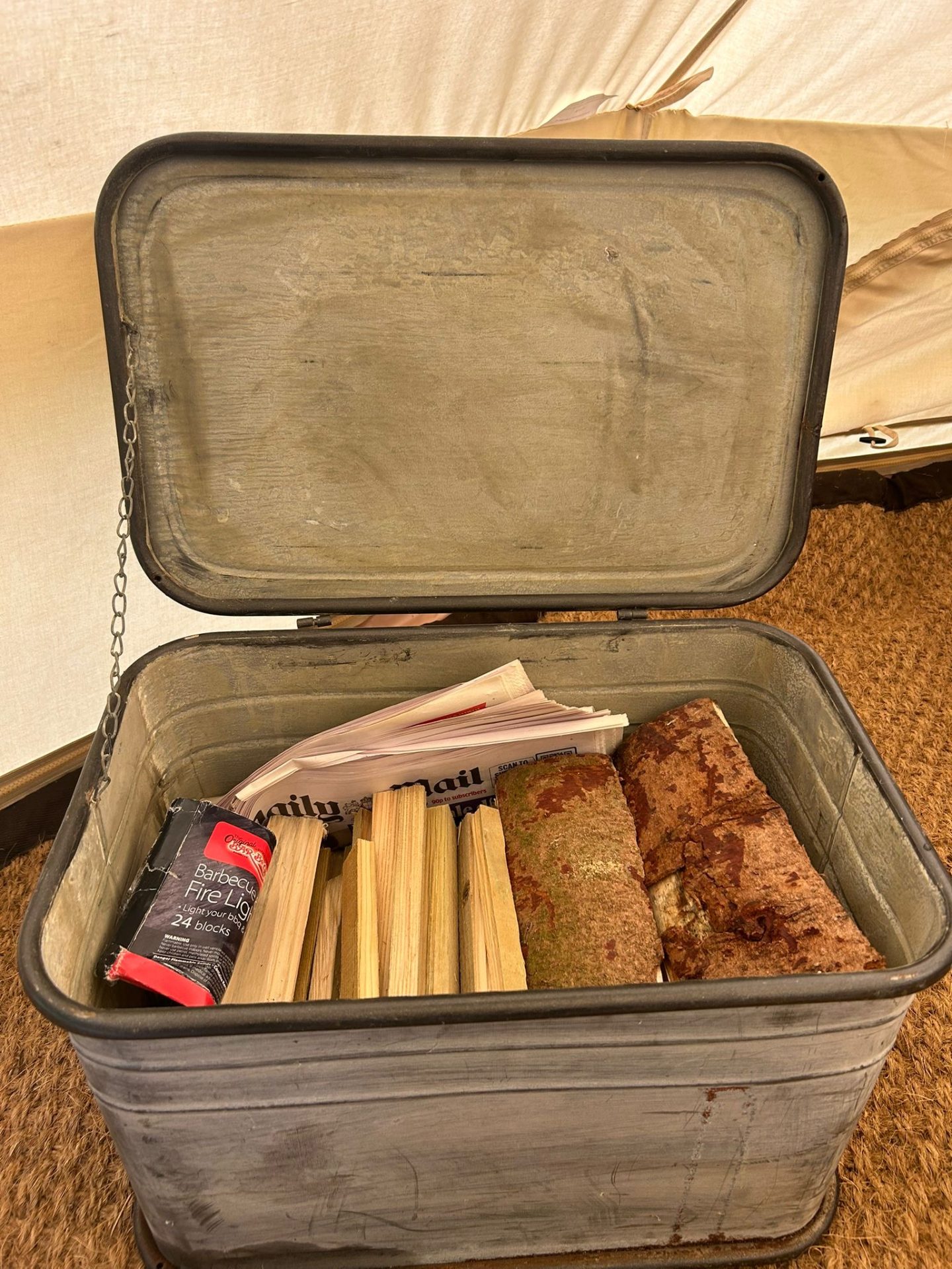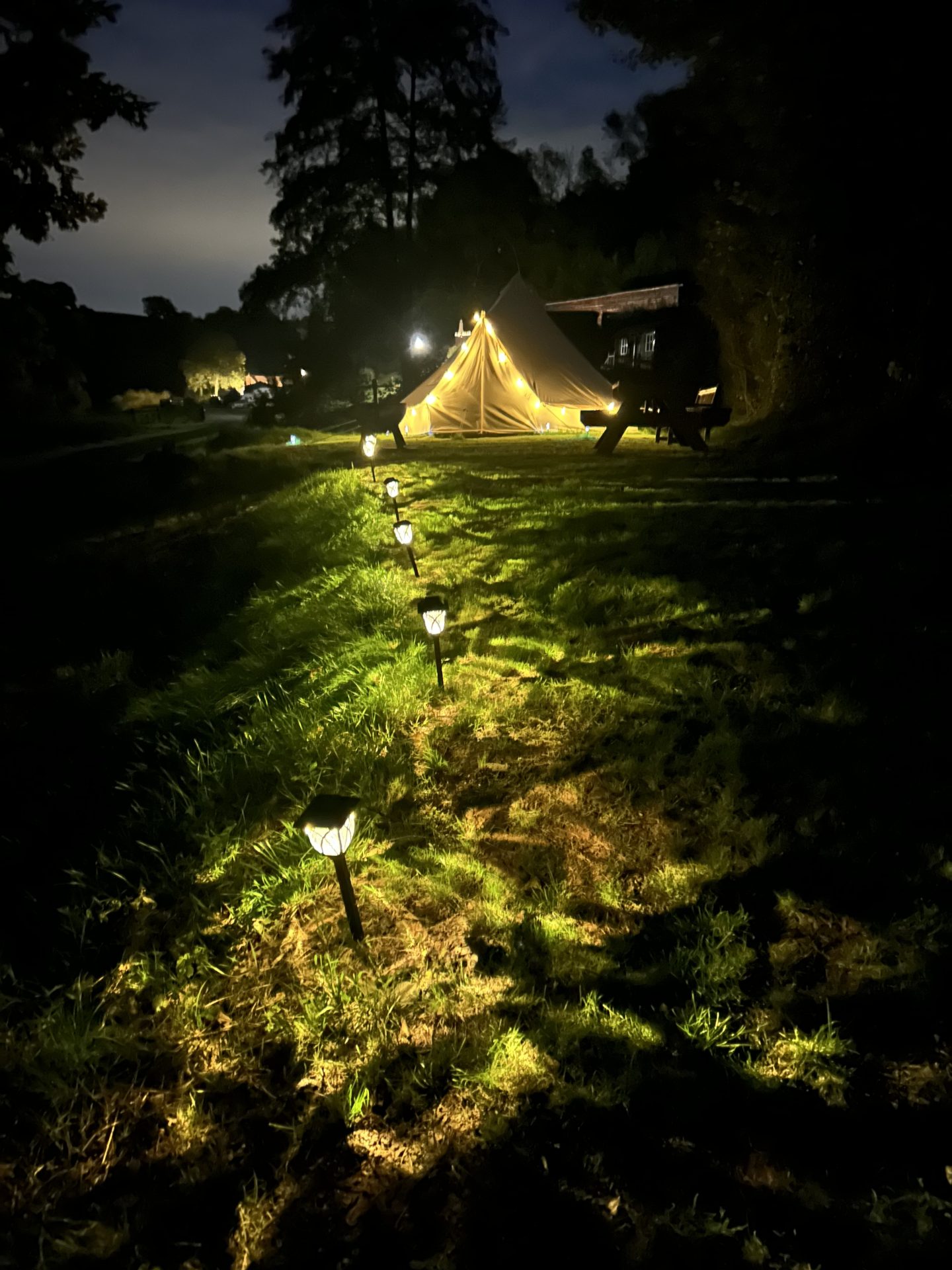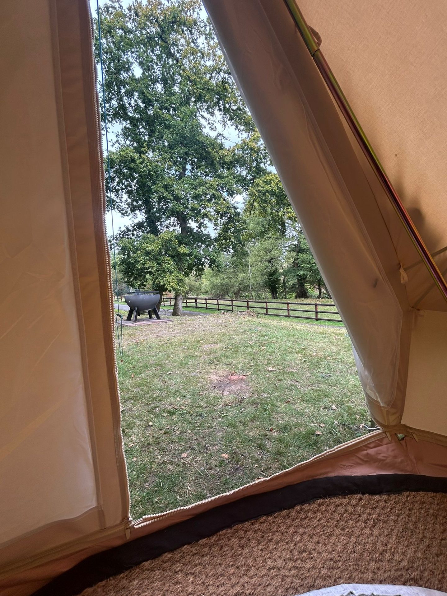 Whilst sitting by the fire pit at night enjoying a glass of wine, you can watch the stars come out and listen to the owls tooting. Firewood available to purchase at ยฃ5 per bag – one free trunk to get you started. This truly is a unique experience. The Bell Tent has private parking next to the tent itself.